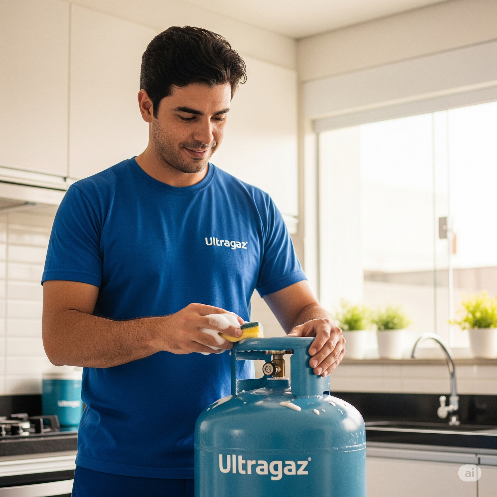 - Como fazer: Primeiramente, misture detergente com água até formar espuma. Em seguida, com uma esponja, aplique a espuma na conexão entre a válvula e o regulador. Se bolhas se formarem, você encontrou o vazamento. No entanto, NUNCA utilize fogo para procurar vazamentos.